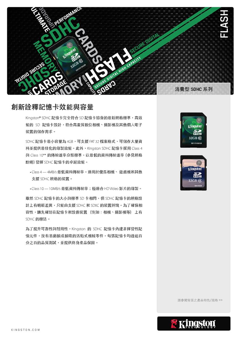 《商品特色說明》 ◆ 用途: 儲存高容量的照片和 HD 高畫質影片 ◆ 若要針對實用性及價格來評分,Kingston 的 SDHC 及 SDXC Class 10 記憶卡可輕鬆拿下 10 分。這些記憶卡專為滿足智慧型手機、平板電腦及高畫質相機和攝錄影機等儲存需求而設計,提供最低 10MB/s 的資料傳輸速率,進而發揮 SDHC/SDXC 裝置的最佳效能。 KINGSTON SDXC 128GB (Class10)