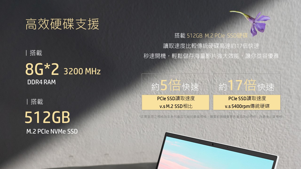 促銷 促銷期間:2022/3/17 ~ 2022/3/31 23:59 活動限量 10 組 Intel Core I 第11代四核心處理器 M.2 PCIe SSD,速度更勝5400rpm HDD 鋁合金A/C蓋,無塵美學設計 標配指紋辨識器&背光鍵盤 附贈品 HP Prelude 15.6 Backpack UC-PD60W 3孔萬國USB充電器 15吋筆電保護包 HP Wired Mouse 1000