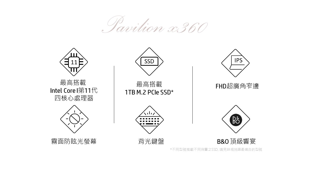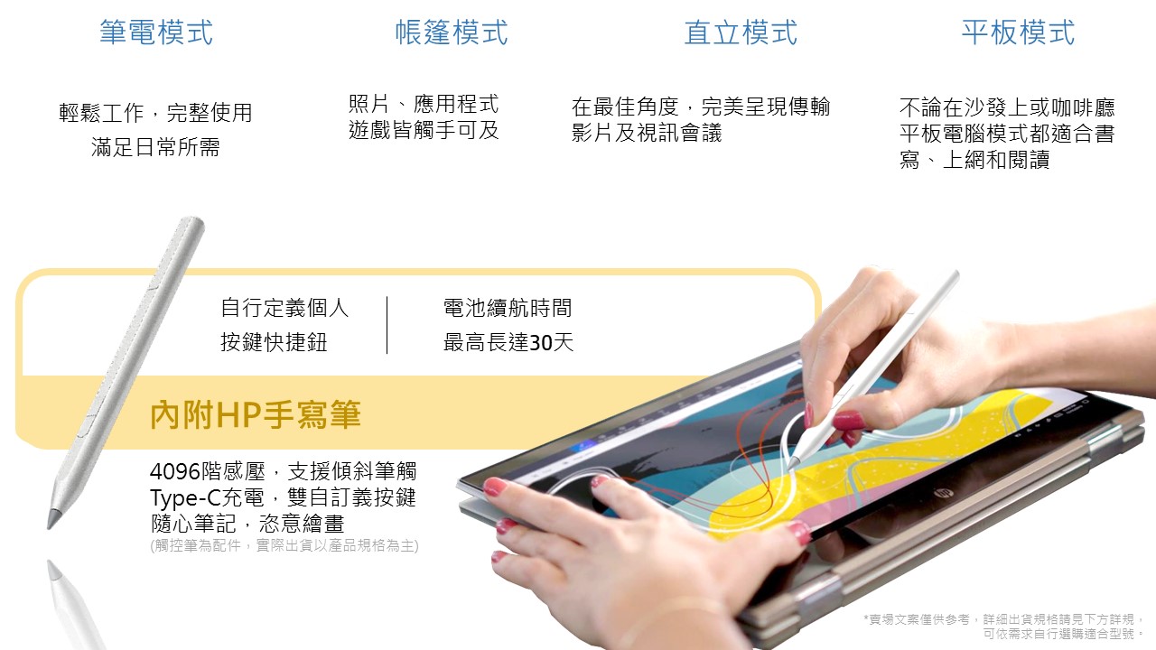 促銷 促銷期間:2022/3/17 ~ 2022/3/31 23:59 活動限量 10 組 Intel Core I 第11代四核心處理器 512G M.2 PCIe SSD,速度更勝5400rpm HDD 87.95%螢幕佔比,視野寬廣無限 輕薄翻轉機身,超高行動性 無塵美學設計,簡潔大方 附贈品 HP Prelude 15.6 Backpack UC-PD60W 3孔萬國USB充電器 15吋筆電保護包 HP Wired Mouse 1000