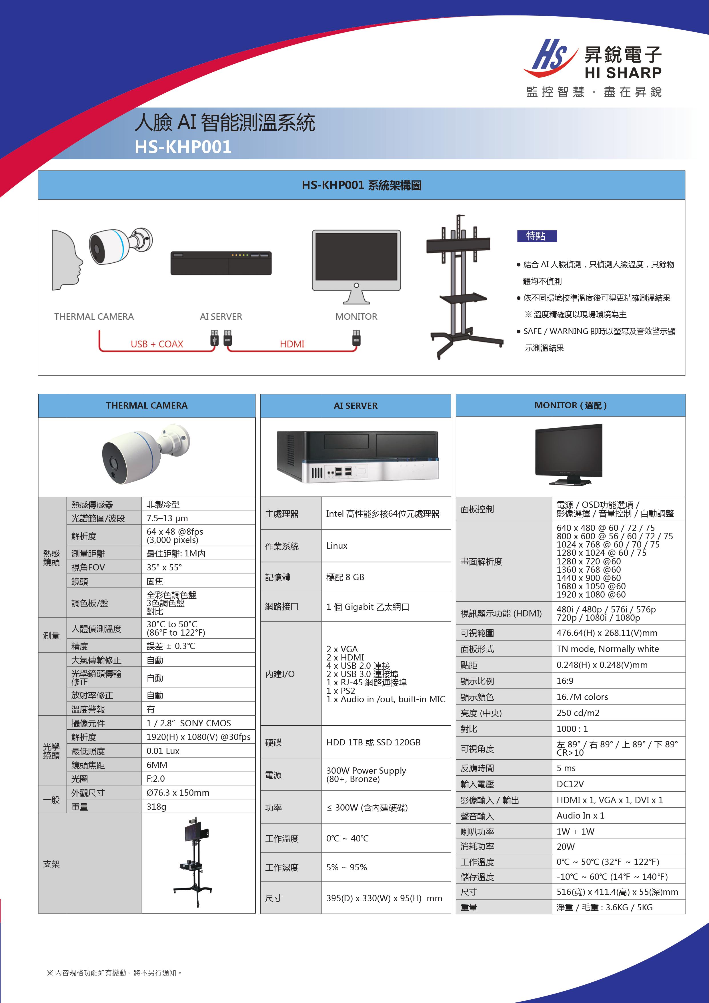昇銳Hi-Sharp人臉測溫辨識警報系統(KHP001)防疫專屬