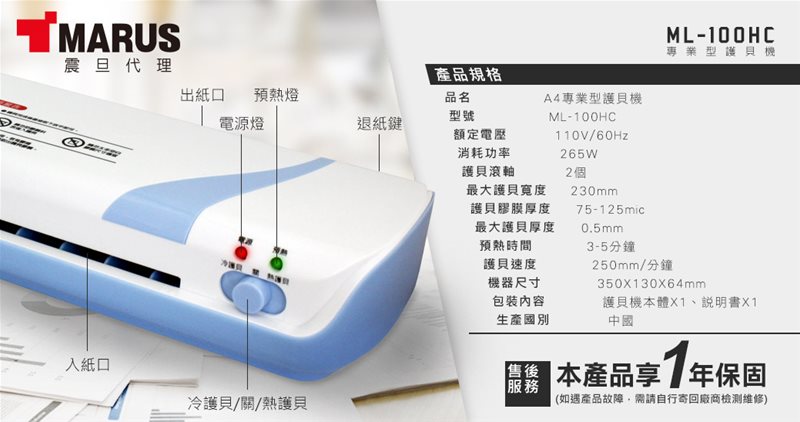 MARUS 馬路 A4專業冷熱雙溫護貝機(ML-100HC)