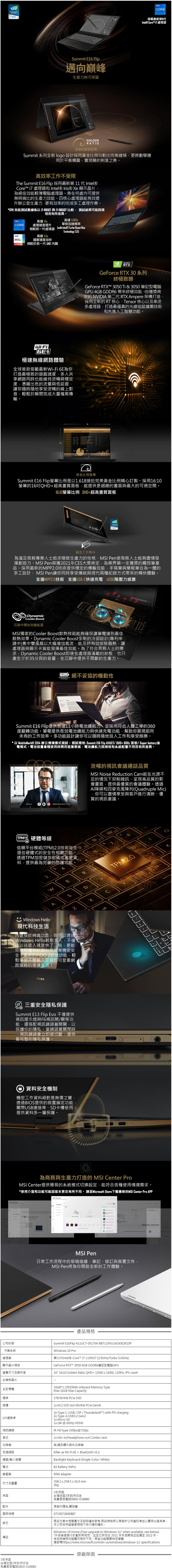 微星 MSI Summit E16Flip A11UCT-051TW-BB71195U16GXXDX10P 16吋筆電