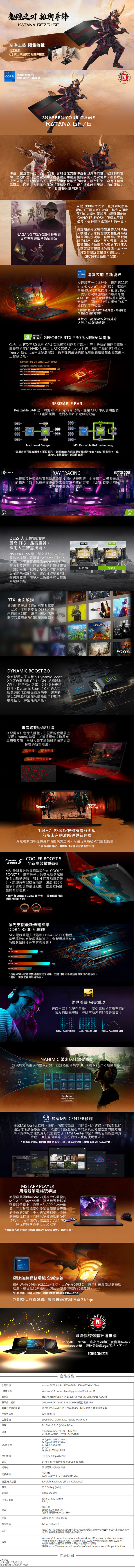 9/1-10/31隨貨加贈電競耳機(H991龍魂款)+武士刀限定款包,交期依原廠公告為準 螢幕:17.3吋 處理器:i7-11800H 記憶體:8G*2 DDR4-3200 儲存空間:512G PCIe SSD 顯示卡:RTX3060 GDDR6 6G 作業系統:Windows 10