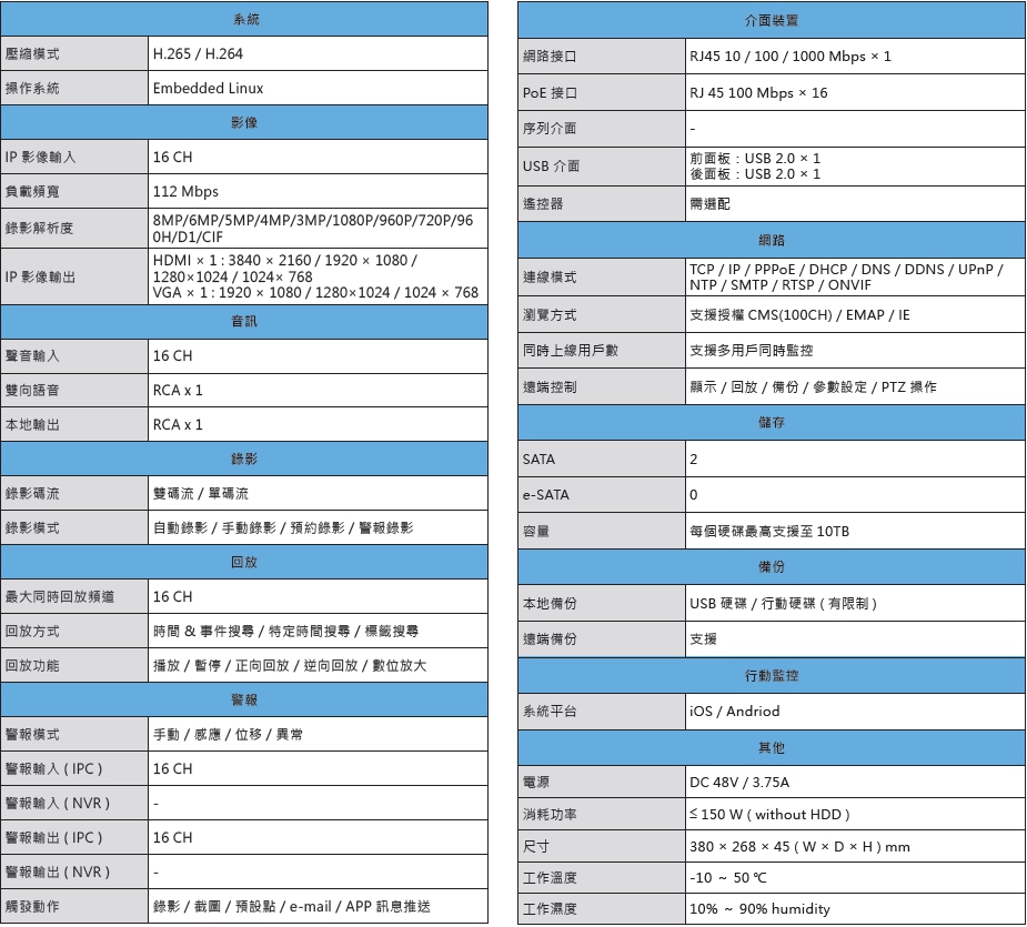 昇銳Hi-Sharp HS-PE6321 16CH H.265 16埠PoE 網路型NVR主機(特惠版)