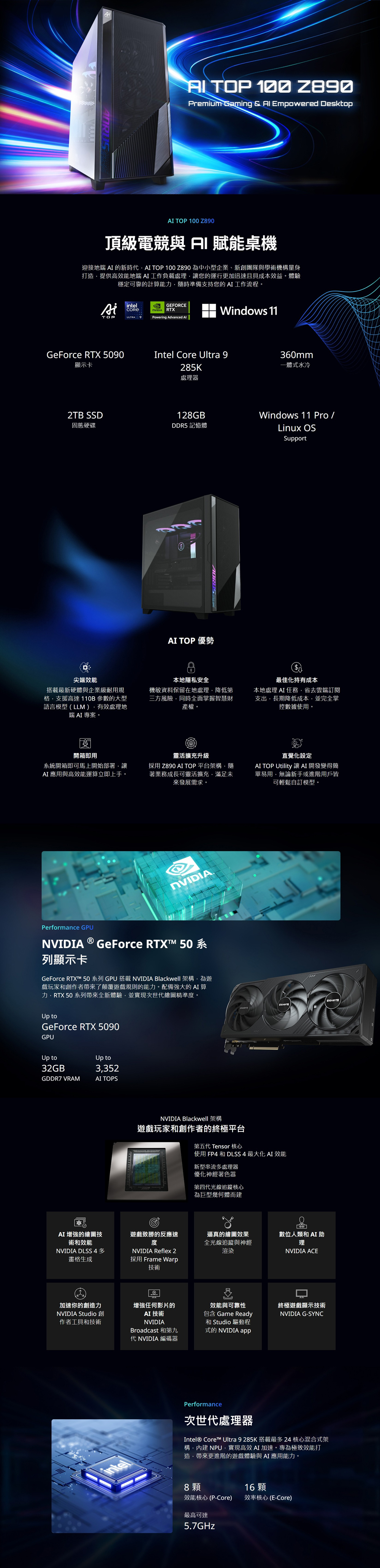 技嘉GIGABYTE AI TOP 100 Z890 桌上型電腦