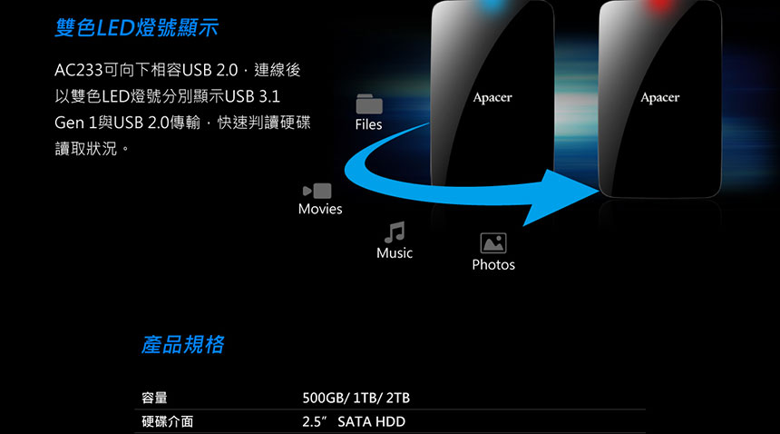 Apacer AC233 2TB 2.5" 行動硬碟 黑(AP2TBAC233B-2)