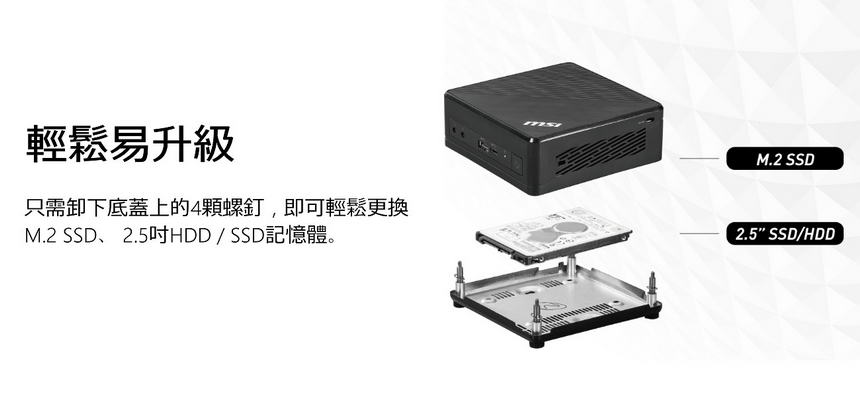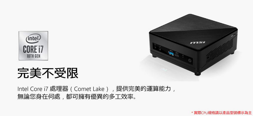 MSI迷你電腦-黑 i5-10210U 1.6G Toubo 4.2G/Black/ UMA/NOS/802.11 AC and BT5/3Y 以下圖文源自官網【同系列商介紹品】與參考用【情境圖】。 非本商品出貨規格。