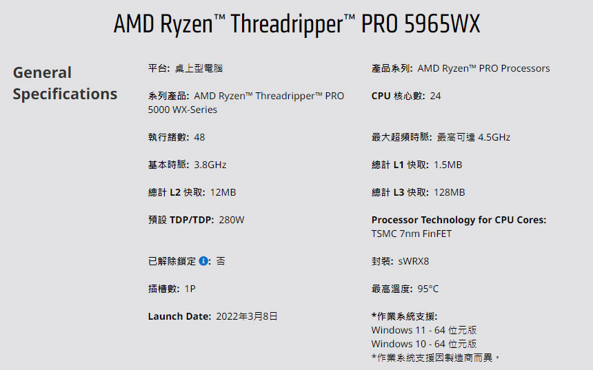 AMD Ryzen Threadripper 5965WX 280W SP3 WOF ( 100-100000446WOF )