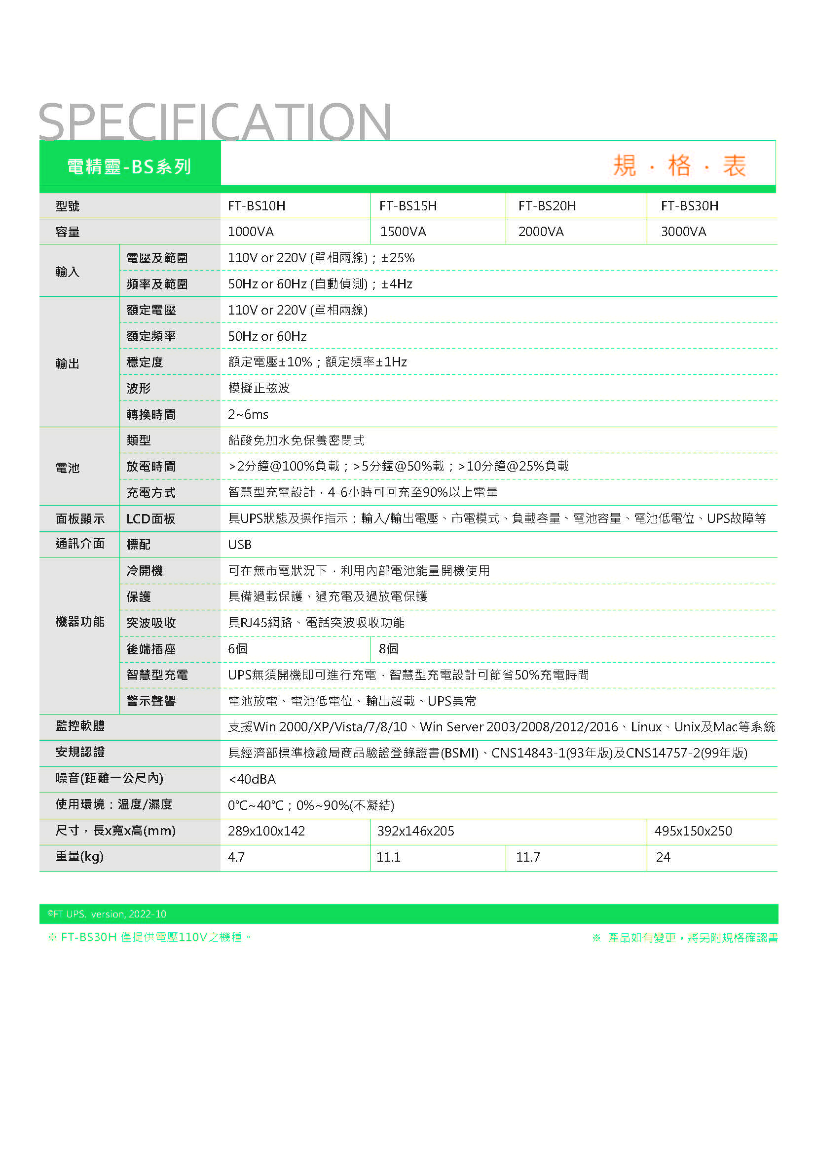 飛碟 FT-BS30H 直立型 3000VA 在線互動式不斷電系統