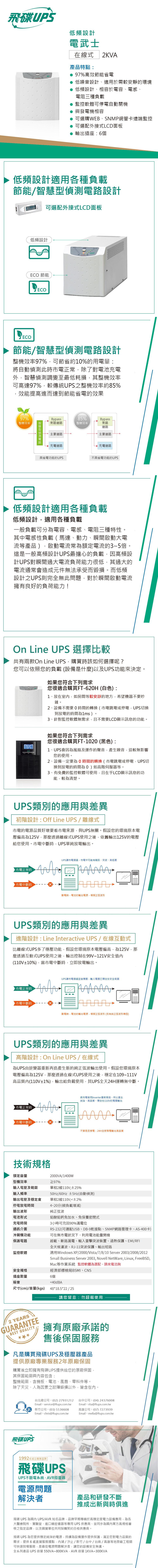 飛碟FT-620H 電武士 2000VA 在線式不斷電系統 直立式 110V