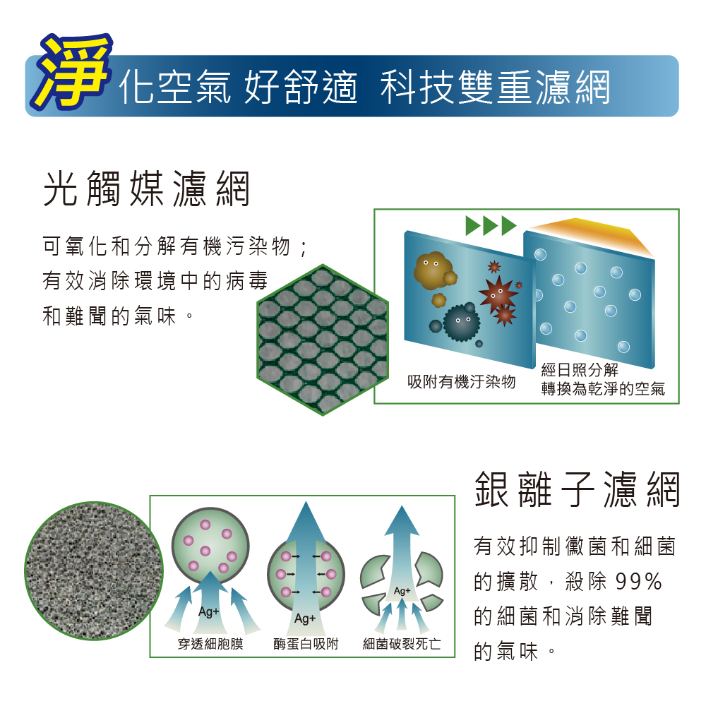 ►光觸媒+銀離子濾網