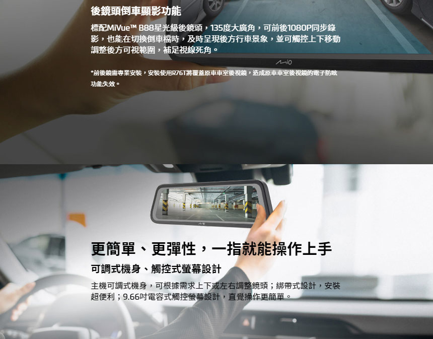 MIO MiVue R76T 雙鏡星光級 全屏觸控式電子後視鏡