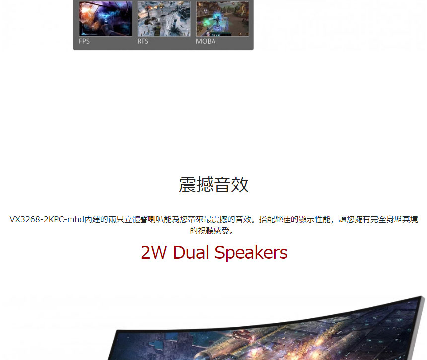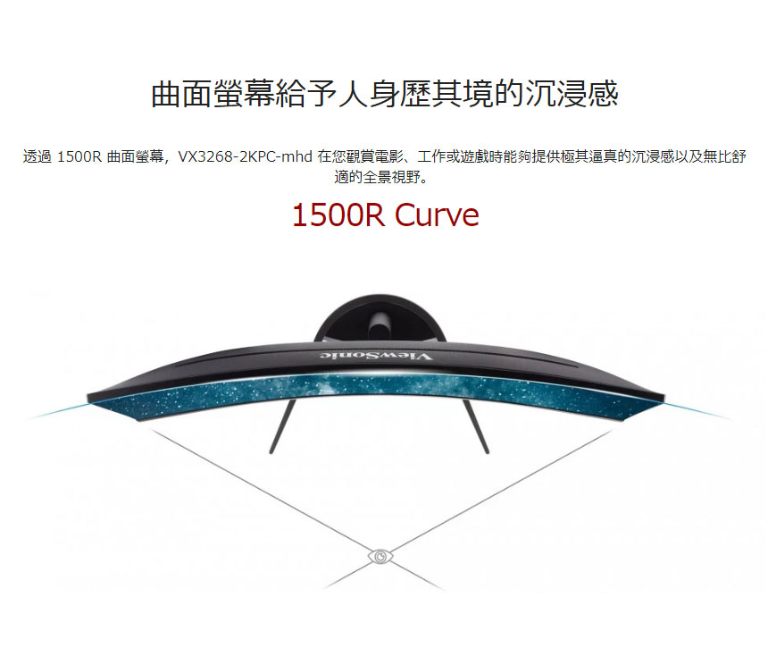ViewSonic VX3268-2KPC-MHD 32" 144Hz QHD 曲面電競顯示器