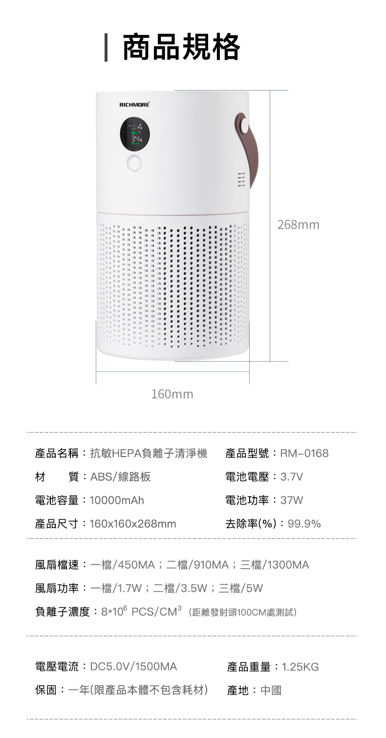RICHMORE抗敏HEPA負離子空氣清淨機 ( RM-0168 )