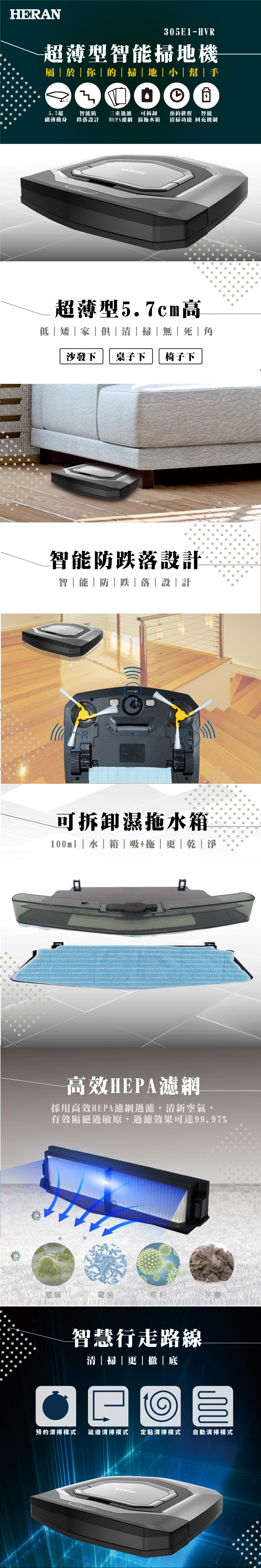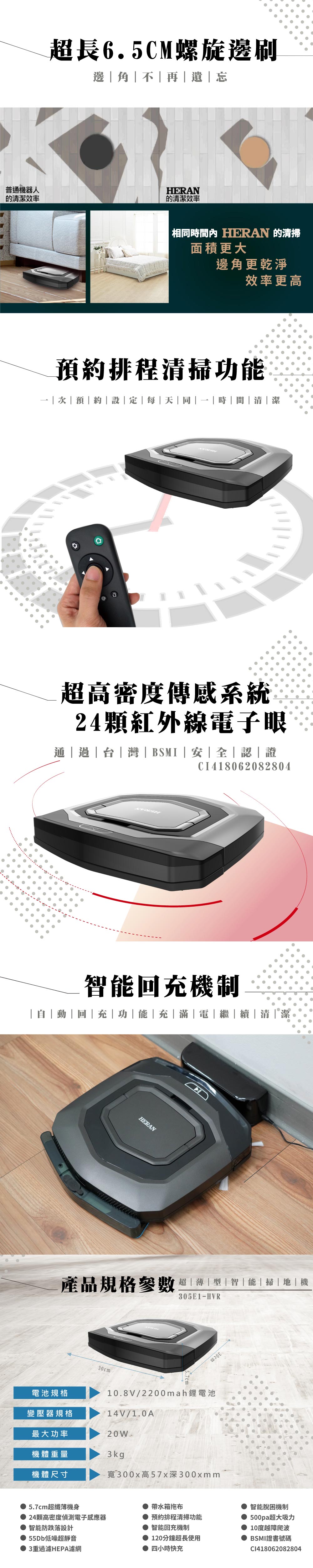 HERAN禾聯305E1-HVR 超薄型智能掃地機-濕拖水箱